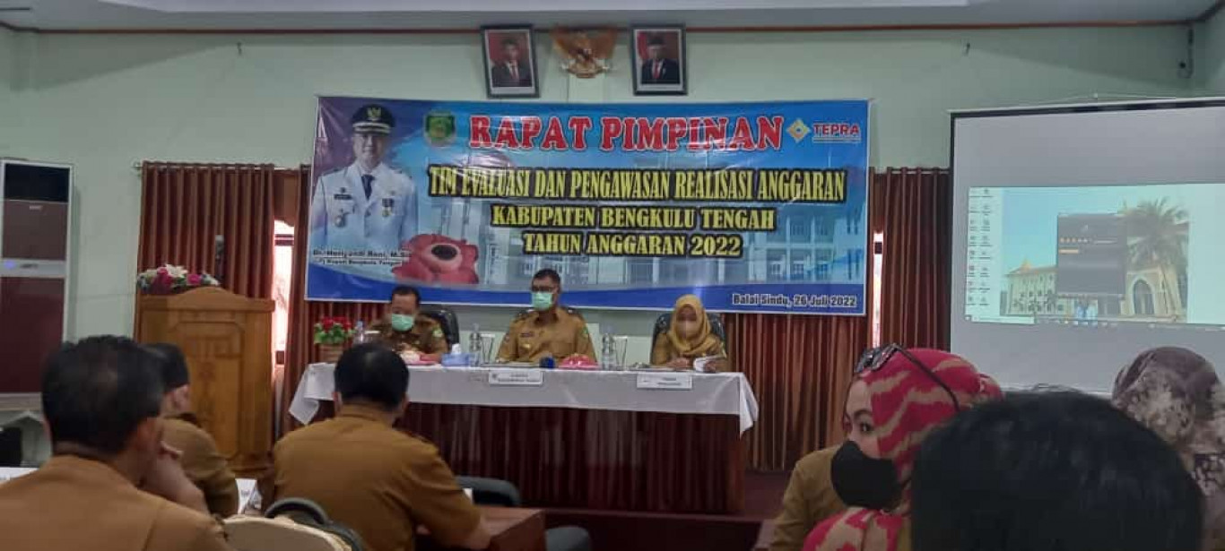 Camat Pematang Tiga Menghadiri Rapat Pimpinan Tim Evaluasi dan Pengawasan Realisasi Anggaran Kab Bengkulu Tengah di Balai Sindu 26 Juli 2022